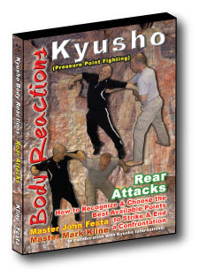Kyusho Body Reactions Rear Attacks Frontal Attacks How to recognize and choose the best available points to strike & end a confrontation quickly. |