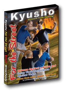 Kyusho for the Street Defense Against a Boxer and How to Use Their Techniques Against Them 2 Parts to the unique DVD 1. How to Defend Against Jabs, Hooks, Uppercuts, & Combinations 2. How to Use These Techniques Against Your Opponent... All using Pressure Points of the Body! |