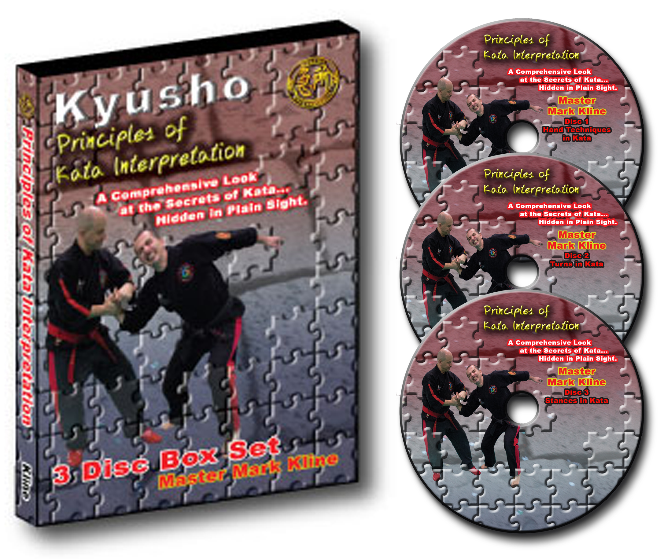 Principles of Kata Interpretation Disc 1 - Hand Postions - How and Why in Kata Disc 2 - Turns in Kata - An Understanding of How and Why Disc 3 - Stances in Kata - An Understanding of How and Why |